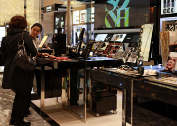 首爾樂(lè)天百貨商場(chǎng)內(nèi)的化妝品柜臺(tái) 記者 何璐璐