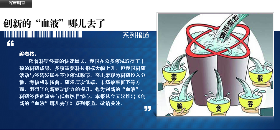 | 統(tǒng)計(jì)顯示,2006年以來,我國(guó)科研投入進(jìn)入快速增長(zhǎng)時(shí)期,2013年我國(guó)全社會(huì)研發(fā)投入已達(dá)1.19萬億元,占全球研發(fā)投入比重達(dá)到11.7%,規(guī)模居世界前列。多家科技型企業(yè)負(fù)責(zé)人對(duì)《經(jīng)濟(jì)參考報(bào)》記者反映,隨著科技經(jīng)費(fèi)快速大幅增長(zhǎng),科研管理體制中的某些弊端也暴露無遺,一些政策縫隙被撕裂、政策漏洞被擊穿,科技投入中途截流、跑冒滴漏普遍,甚至被套取挪用。 | |