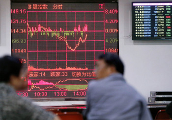 29日,股民在上海一家證券營(yíng)業(yè)部?jī)?nèi)關(guān)注股市行情。 新華社記者 丁汀/攝