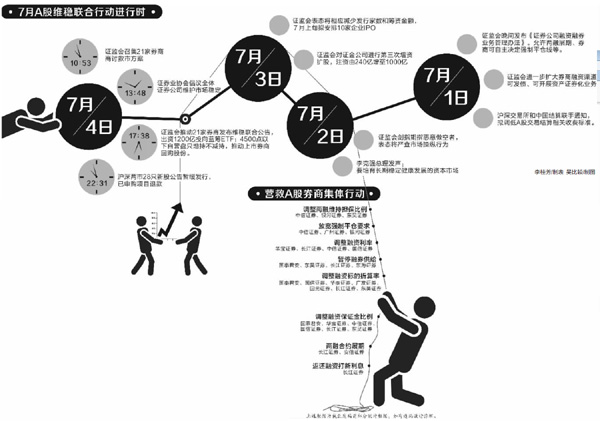 中信證券、招商證券等20家券商相關(guān)人士則紛紛表示,在國家金融系統(tǒng)穩(wěn)定受到威脅之際,證券公司出資維護(hù)資本市場長期穩(wěn)健發(fā)展,這是大中型券商義不容辭的責(zé)任,因此急事急辦,在不召開董事會的情況下,并在董事會授權(quán)的自營額度內(nèi),按照聯(lián)合公告的承諾出資,周一(6日)早上將相關(guān)資金打到監(jiān)管層指定的證金公司賬戶上。