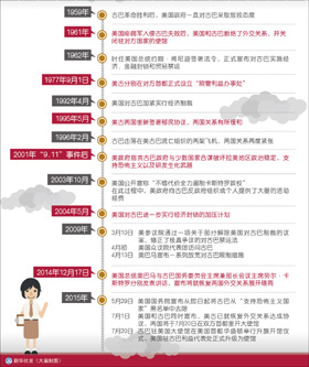 美古兩國錯綜復(fù)雜的關(guān)系可追溯到上個世紀(jì)中葉。1959年,菲德爾·卡斯特羅領(lǐng)導(dǎo)革命軍推翻獨(dú)裁統(tǒng)治,建立起西半球的第一個社會主義政權(quán),至此美國政府開始對古巴采取敵視政策。1961年1月,美國雇傭軍入侵古巴失敗后,美國和古巴斷絕了外交關(guān)系。之后,美國又于1962年宣布對古巴實(shí)施經(jīng)濟(jì)、金融封鎖和貿(mào)易禁運(yùn)。這一孤立政策持續(xù)了長達(dá)50多年。
