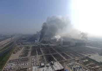 ??? 8月13日從爆炸地點附近的高層拍攝的現(xiàn)場。記者 岳月偉 攝 |