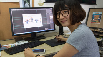 ??? 圖為一位設(shè)計師在北京“十月動畫工坊”工作室展示電影《大圣歸來》的設(shè)計稿。記者 吳凱翔 攝 |