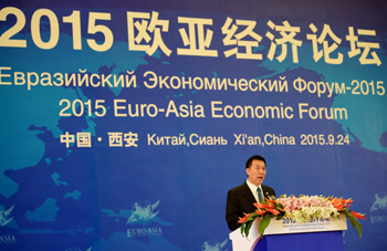 9月24日,2015歐亞經(jīng)濟論壇在西安開幕,國務委員王勇出席開幕式并發(fā)表主旨演講。 新華社記者 劉瀟/攝 |