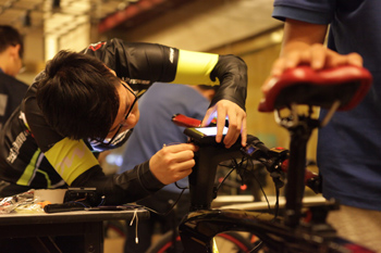 近日,樂(lè)視體育的工程師在調(diào)試由樂(lè)視體育和天津飛鴿自行車(chē)廠合作研發(fā)生產(chǎn)的“超級(jí)自行車(chē)”。 新華社發(fā) |