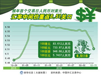 春節(jié)后的第一個交易日,人民幣對美元就強勢上漲。15日,中國外匯交易中心公布的人民幣對美元匯率中間價報6.5118,較前一交易日上漲196個基點,漲幅達(dá)0.30%。與此同時,在岸人民幣兌美元即期匯率當(dāng)日收盤價報報6.4944,較上個交易日收盤價大漲751基點,創(chuàng)下2005年7月匯改以來的最大單日漲幅。