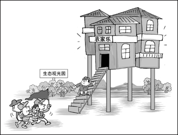 在重慶一戶農(nóng)家樂采訪時,記者看到10多座木質(zhì)“農(nóng)家旅舍”環(huán)湖而建,建筑物離地挑空一兩米,使用鋼架作支撐。農(nóng)家樂負(fù)責(zé)人說:“之所以要騰空建房,就是因?yàn)檎咭?guī)定農(nóng)業(yè)用地不能改變用途,但農(nóng)旅配套又必須建接待設(shè)施,離地挑高建木房風(fēng)險(xiǎn)就較小。”