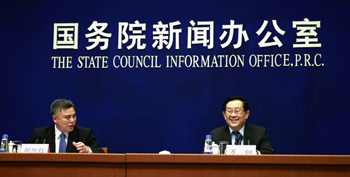 2月24日,國務院新聞辦公室在北京舉行新聞發(fā)布會,邀請科技部部長萬鋼(右)介紹科技改革和創(chuàng)新發(fā)展有關(guān)情況,并答記者問。 新華社記者 潘旭/攝 |