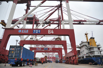 今年以來,煤炭、金屬礦石等大宗物資國際價格處于低位,國內(nèi)鋼廠和貿(mào)易商加大進口采購,港口業(yè)經(jīng)營形勢出現(xiàn)好轉(zhuǎn),各地港口捷報頻傳。交通部日前披露的數(shù)據(jù)顯示,一季度,規(guī)模以上港口完成貨物吞吐量27.6億噸,同比增長1.7%,增速較上年四季度回升了2.4個百分點。其中,內(nèi)貿(mào)貨物吞吐量增速由上年四季度下降1.8%轉(zhuǎn)為增長1.5%;外貿(mào)貨物吞吐量增長1.9%,較上年四季度回升了0.2個百分點。完成集裝箱吞吐量5000萬標箱,增長1.9%,增速較上年四季度放緩0.9個百分點。