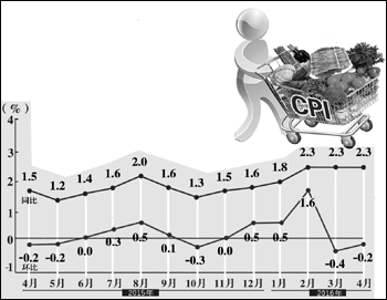 食品價(jià)格的波動(dòng)在今年春季CPI的上漲中扮演了關(guān)鍵的角色。今年2月至4月,豬肉價(jià)格同比分別上漲25.4%、28.4%和33.5%,鮮菜價(jià)格同比分別上漲30.6%、35.8%和22.6%。但是從環(huán)比來(lái)看,自3月份起,鮮菜價(jià)格開(kāi)始下滑,4月份這種趨勢(shì)進(jìn)一步加劇。國(guó)家統(tǒng)計(jì)局城市司高級(jí)統(tǒng)計(jì)師余秋梅表示,4月份CPI環(huán)比下降0.2%,主要就是受到了鮮菜價(jià)格下降較多的影響。4月份正值春夏之交,應(yīng)季鮮菜大量上市,鮮菜價(jià)格環(huán)比下降12.5%,影響CPI環(huán)比下降約0.43個(gè)百分點(diǎn)。