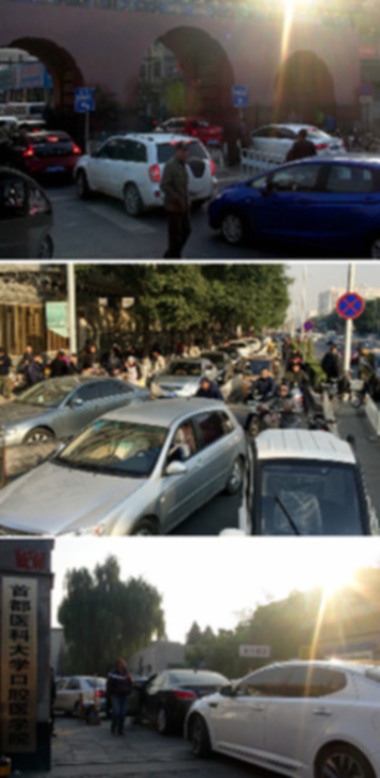 ▲11月2日清晨,天壇、宣武、口腔醫(yī)院門前擁擠的車流。這樣的情況幾乎每天都在上演。