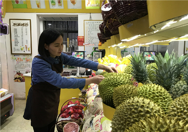 近日,梁培培在自營(yíng)水果店內(nèi)為顧客挑選水果。從淮北礦業(yè)集團(tuán)離開至今,不到一年時(shí)間,梁培培的生意從當(dāng)初的一輛雪糕車變成了三個(gè)店面,月營(yíng)業(yè)額20萬(wàn)元。