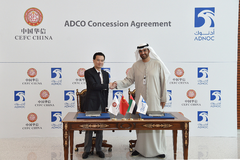 2017年2月20日,中國華信董事會主席葉簡明與ADNOC首席執(zhí)行官、阿布扎比酋長國最高石油委員會成員蘇爾坦?艾哈邁德?賈巴爾共簽協(xié)議,中國華信獲得了阿布扎比最大的已開發(fā)油氣區(qū)塊4%的40年權(quán)益