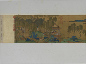 具體來看,中國古代書畫三個夜場今年共斬獲4.085億元。其中,“澄道——古代繪畫夜場”呈現(xiàn)諸多精彩繪畫名跡,共上拍35件精品,總成交額斬獲2.28億元。著錄于《石渠寶笈三編》的仇英《蓬萊仙弈圖》拍前估價2000萬元至2500萬元,當晚以1700萬元起拍,經(jīng)過多番激烈競價,最終以8165萬元成交,創(chuàng)下其個人拍賣紀錄第二高價,同時也成為此次匡時2017春拍成交價最高拍品。此件仇英《蓬萊仙弈圖》有文征明題跋與文彭題引首,為仇英青綠山水的典型畫風。“蓬萊”與“仙弈”是道教意象明顯的神仙題材,在明代皇帝崇尚道教最鼎盛的嘉靖年間,凡人可成仙的觀念已憑借《蓬萊仙弈圖》與多個摹本的傳播而深入人心,作為民間職業(yè)畫家的仇英繪制此一題材長卷,深受當時社會思想風潮的影響。此卷后來進入清宮,被《石渠寶笈三編》收錄,并鈐有“乾隆隆御覽之寶、石渠寶笈、乾隆鑒賞、三希堂精鑒璽、宜子孫、嘉慶御覽之寶、寶笈三編、宣統(tǒng)御覽之寶”等清內府鑒賞印。
