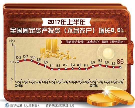 ????投資是穩(wěn)增長的重要“利器”。上半年,全國固定資產(chǎn)投資(不含農(nóng)戶)280605億元,同比增長8.6%,增速比一季度回落0.6個百分點。