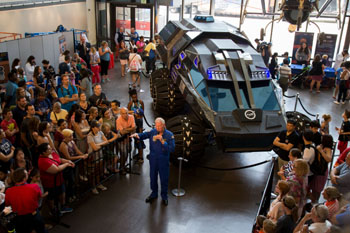 ??? 7月21日,在華盛頓的美國國家航空航天博物館,退休宇航員喬恩·麥克布賴德(中)為觀眾介紹“火星漫游概念車”。21日是美國國家航空航天博物館一年一度的“火星日”,旨在向公眾科普關(guān)于火星的知識(shí)。新華社發(fā)(沈霆 攝) |