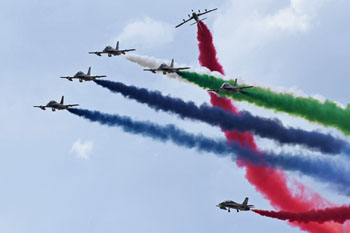 ??? 7月23日,在俄羅斯莫斯科郊外的茹科夫斯基市,阿聯(lián)酋空軍“騎士”飛行表演隊(duì)在莫斯科航展上進(jìn)行飛行表演。 當(dāng)日,莫斯科國際航空航天展覽會(huì)閉幕。新華社/衛(wèi)星社 |