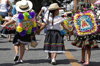??? 7月29日,在哥倫比亞麥德林,孩子們參加鮮花節(jié)傳統(tǒng)游行活動。當日,第60屆麥德林鮮花節(jié)在素有“永春之城”的哥倫比亞麥德林市拉開帷幕。新華社/歐新 |