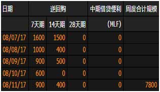 本周央行貨幣政策工具7800億元資金到期。其中包括7天期逆回購(gòu)5000億元,14天期逆回購(gòu)2800億元。本周無(wú)中期借貸便利(MLF)到期。