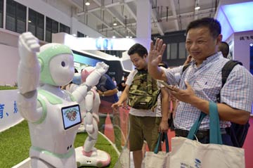 8月22日,觀眾在參觀一廠家的教育型智能機(jī)器人。2017世界機(jī)器人大會(huì)于8月23日至27日在北京亦創(chuàng)國(guó)際會(huì)展中心舉行。記者 李欣 攝? |