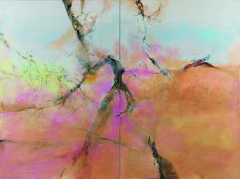 《24.12.2002-雙聯(lián)作》一股柔和而具有律動的能量充盈于此巨幅雙聯(lián)畫作,微妙的色彩層次的視覺感非常豐富:上方一抹湖藍(lán)色與下方的梅紅色以及大面積的暖褐色融合為背景色。這與趙無極早期作品著重用筆的力度及油彩的厚重方式不同,此作品不但探索了色彩,光線及用色的巧妙運(yùn)用,更是散發(fā)出輕盈的氣息以及由畫布自內(nèi)向外散發(fā)的柔和光芒。這種對于輕盈、抽象的空間的追尋,契合大膽的色彩運(yùn)用正是趙無極在晚期創(chuàng)作所追尋的和諧點。趙無極的藝術(shù)成就不僅在于他在西方抽象藝術(shù)發(fā)展中開創(chuàng)了其獨(dú)特具有東方美學(xué)的藝術(shù)風(fēng)格,更是他將中國哲學(xué)的深刻洞見與創(chuàng)造性詮釋于藝術(shù)創(chuàng)作之中,這條東西美學(xué)融合的艱難探索之路,不但在世界藝術(shù)史發(fā)展中留下精彩的篇章,亦是藝術(shù)家回歸內(nèi)在本源。佳士得亞洲二十世紀(jì)及當(dāng)代藝術(shù)資深專家莊俊表示:“作為世界藝術(shù)舞臺上最耀眼的華人藝術(shù)大師之一,趙無極豐富的繪畫語言與筆觸不斷帶給我們驚喜與感動。此件由歐洲征集的藝術(shù)家晚期代表作品更為本季秋拍增添更多色彩和分量。與此同時,本專題將呈現(xiàn)數(shù)件趙無極不同時期油畫和紙上等精甄之作。”