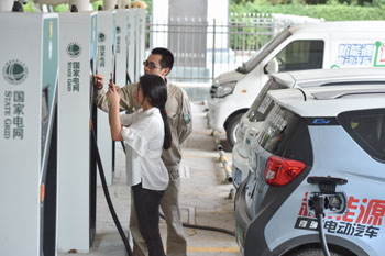 ??? 9月27日,在福建省南安市一處國家電網(wǎng)電動汽車充電站,市民(前)向技術人員了解充電操作流程。國慶將至,電動汽車租賃市場升溫,不少租車公司、共享汽車企業(yè)紛紛推出針對電動汽車用戶的出行套餐。記者 宋為偉 攝 |