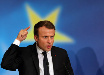 ??? 9月26日,法國總統(tǒng)馬克龍在巴黎索邦大學發(fā)表演說,提出一系列重塑歐洲的建議主張。馬克龍說,歐洲大陸面臨許多重大挑戰(zhàn),在防務安全、移民、發(fā)展、氣候變化、數(shù)字革命和全球經(jīng)濟一體化等方面都需要作出重大調整。新華社/路透 |