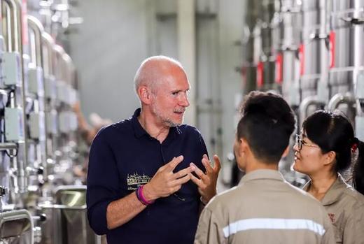 摩塞爾在發(fā)酵車(chē)間和年輕員工交流