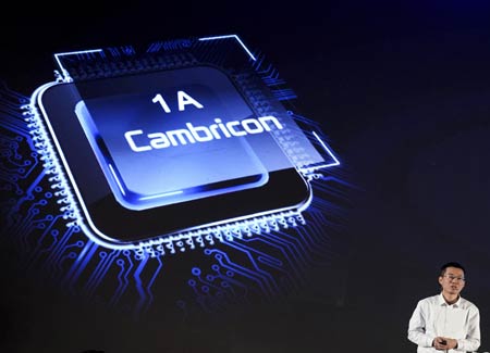 11月6日,中科院計算所研究員、寒武紀(jì)公司首席執(zhí)行官陳天石在介紹寒武紀(jì)人工智能芯片。