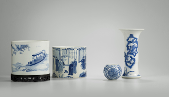 景德鎮(zhèn)的明代御器廠在萬歷三十六年(1608年)正式輟燒,這意味著民窯可以完全擺脫皇權(quán)的各種鉗制,進入了一個空前繁榮的輝煌時代。過去被御器廠壟斷的優(yōu)質(zhì)原材料、先進技術(shù)與高級窯工,如今都轉(zhuǎn)向民窯作坊,龐大的外銷訂單與繁榮的內(nèi)銷市場刺激了民窯作坊在規(guī)模與質(zhì)量上的雙飛躍。青花與五彩瓷是十七世紀的主流產(chǎn)品,景德鎮(zhèn)此時制瓷的分工與流程也越來越細致、繁復、專業(yè),產(chǎn)品品質(zhì)自然也越來越高。許之衡在《飲流齋說瓷》中評價“硬彩、青花均以康熙為極軌。”傳統(tǒng)的山水紋樣始終是畫匠與窯師們最愛的題材之一。得益于瓷胎與青花料的提純技術(shù)的提高,青花瓷上的山水開始與傳統(tǒng)的繪畫技法風格融合,所謂紙絹上講究墨分五色的水墨變化效果,也被應用在青花瓷器的發(fā)色濃淡層次變化上,并結(jié)合各種筆皴之法,使此時瓷器上的山水圖成為了純粹的繪畫藝術(shù)。硬冷的瓷面上,如手卷般徐徐展開的山川河流、寒峰雅舍,或是華茂參天的古樹,在王朝更迭、山河變色的大時代里,顯得更加意味深長,高潔雋永。他們是道德禮樂的制定者,卻也是離經(jīng)叛道的破壞領(lǐng)袖;他們是精神境界的倡領(lǐng)者,卻也是風花雪月的糜爛分子;他們是文化品位的創(chuàng)造者,卻也是懷才不遇的落魄之徒。他們就是古代的文人士大夫。晚明以后,在國破家亡的歷史轉(zhuǎn)折里,大批從追求仕途中解放出來的文人名士,紛紛轉(zhuǎn)向社會活動,他們的藝術(shù)才情開始向建筑、造園、工藝、版畫、家具、制瓷等諸多工商業(yè)領(lǐng)域傾注延伸,他們結(jié)社交游、賞鑒古董、吟風弄月、怡情養(yǎng)生,將高雅脫俗的精神境界與日常生活相結(jié)合,從而形成了一套獨特而完整的藝術(shù)生活體系,成為了整個社會的藝術(shù)、時尚、審美、品級的指南與指標。