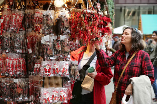 11月28日,人們?cè)诿绹?guó)芝加哥圣誕市場(chǎng)上選購圣誕裝飾。位于芝加哥市中心戴利廣場(chǎng)的圣誕市場(chǎng)每年從11月感恩節(jié)前后到圣誕節(jié)結(jié)束之前開放,是芝加哥最受歡迎的冬季景點(diǎn)之一。記者 汪平 攝