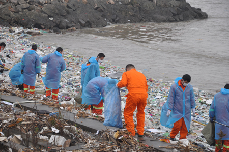 “我從來沒見過這么多的垃圾,紅色、黑色、白色……各色廢棄塑料袋、塑料瓶隨著江濤起起伏伏,其間還夾雜著一些醫(yī)療垃圾。堤岸斜坡也被江水沖上來的垃圾鋪滿,相比日常的垃圾量多了不知多少倍。”時隔一年,太倉海事局第二海巡執(zhí)法大隊大隊長徐益輝仍記憶猶新。
