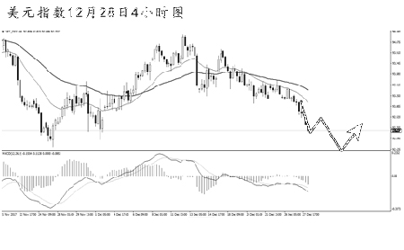 美元指數(shù)經(jīng)過一周多的盤整之后大幅走低。從日線圖上看,本周價格波幅不大,但K線幾乎全部收陰,均線系統(tǒng)被反復(fù)穿越。再看4小時圖,經(jīng)過本輪的回落,主趨勢重新轉(zhuǎn)為向下,下方的首道支撐在92.45,預(yù)計美元指數(shù)將繼續(xù)向此位置發(fā)起挑戰(zhàn)。短線下跌斜率陡峭,此前發(fā)生的MACD底背離信號效果一般,目前繼續(xù)以看漲非美貨幣為主。