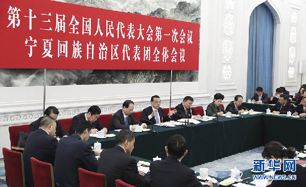 3月10日,中共中央政治局常委、國務(wù)院總理李克強(qiáng)參加十三屆全國人大一次會議寧夏代表團(tuán)的審議。 新華社記者 丁林 攝