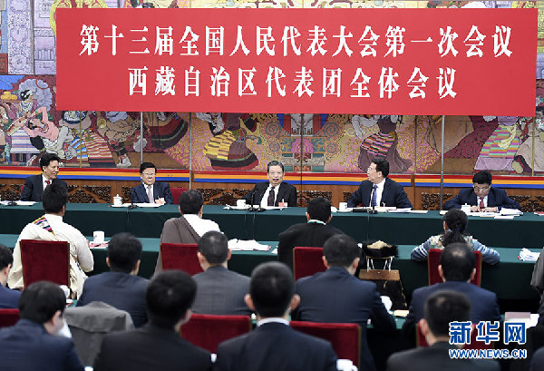 3月10日,中共中央政治局常委、中央紀(jì)委書記趙樂際參加十三屆全國人大一次會議西藏代表團(tuán)的審議。 新華社記者 張領(lǐng) 攝