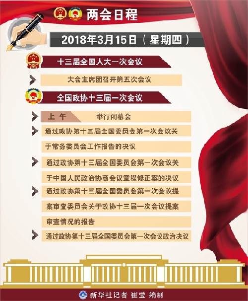 十三屆全國人大一次會(huì)議15日安排代表休息。大會(huì)主席團(tuán)召開第五次會(huì)議。