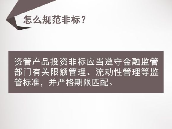 以非標(biāo)準(zhǔn)化債權(quán)類(lèi)資產(chǎn)投資為例,資管新規(guī)明確了標(biāo)準(zhǔn)化債權(quán)類(lèi)資產(chǎn)的核心要素,提出期限匹配、限額管理等監(jiān)管措施,引導(dǎo)商業(yè)銀行有序壓縮非標(biāo)存量規(guī)模。