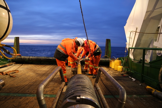 2017年1月,廣州海洋地質調查局“海洋六號”科考船科技人員在南極海域使用自助研發(fā)的地熱探針進行科考作業(yè),這是我國首次開展地熱探測并成功采集到南極海底地熱流數(shù)據(jù)。記者 王攀 攝
