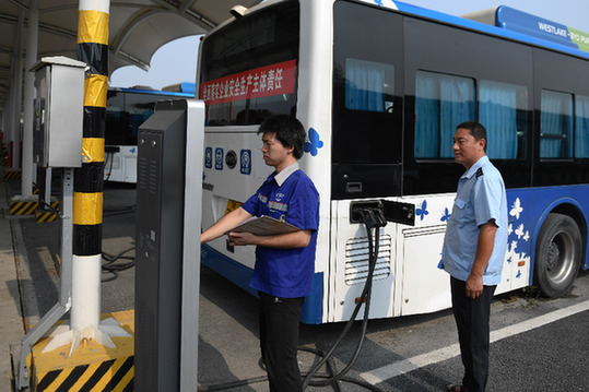 行駛中無尾氣排放,實(shí)現(xiàn)“零排放、零污染”的純電動(dòng)公交車已成為杭州的一道亮麗風(fēng)景線。記者 黃宗治 攝