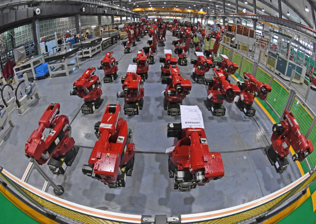 這是沈陽新松機器人自動化股份有限公司工業(yè)機器人生產(chǎn)車間(2017年6月6日攝)。新華社記者 楊青 攝