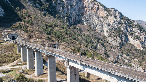 春運(yùn)期間,中國(guó)鐵路成都局集團(tuán)有限公司六盤水工電段的橋隧工人堅(jiān)守在位于烏蒙山區(qū)滬昆鐵路天生橋特大橋檢查崗位上,保障春運(yùn)列車安全通行。