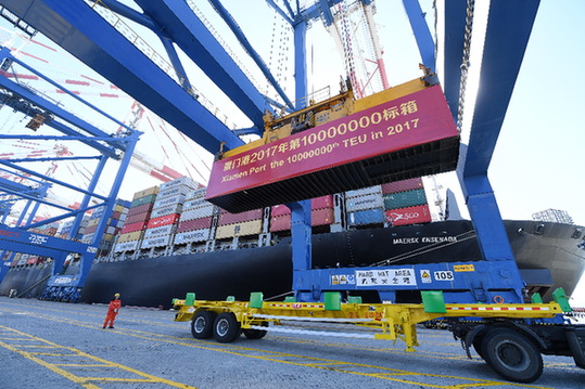 據(jù)相關(guān)部門數(shù)據(jù)顯示,目前廈門港共開通集裝箱航線140余條,年集裝箱吞吐量突破1000萬標(biāo)箱。在“一帶一路”互聯(lián)互通方面,廈門共有“一帶一路”海上航線57條、空中航線20條,始發(fā)于廈門的中歐班列已通達(dá)12個國家30多個城市,實現(xiàn)“絲綢之路經(jīng)濟(jì)帶”和“21世紀(jì)海上絲綢之路”的無縫鏈接。