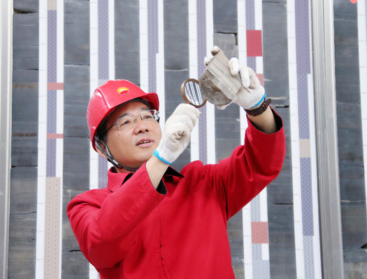 大港油田總經(jīng)理趙賢正現(xiàn)場查看巖心樣本。資料照片