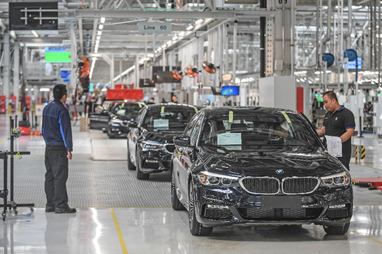 工人在沈陽華晨寶馬大東工廠生產(chǎn)線上工作(2018年5月23日攝)。新華社記者 楊青 攝