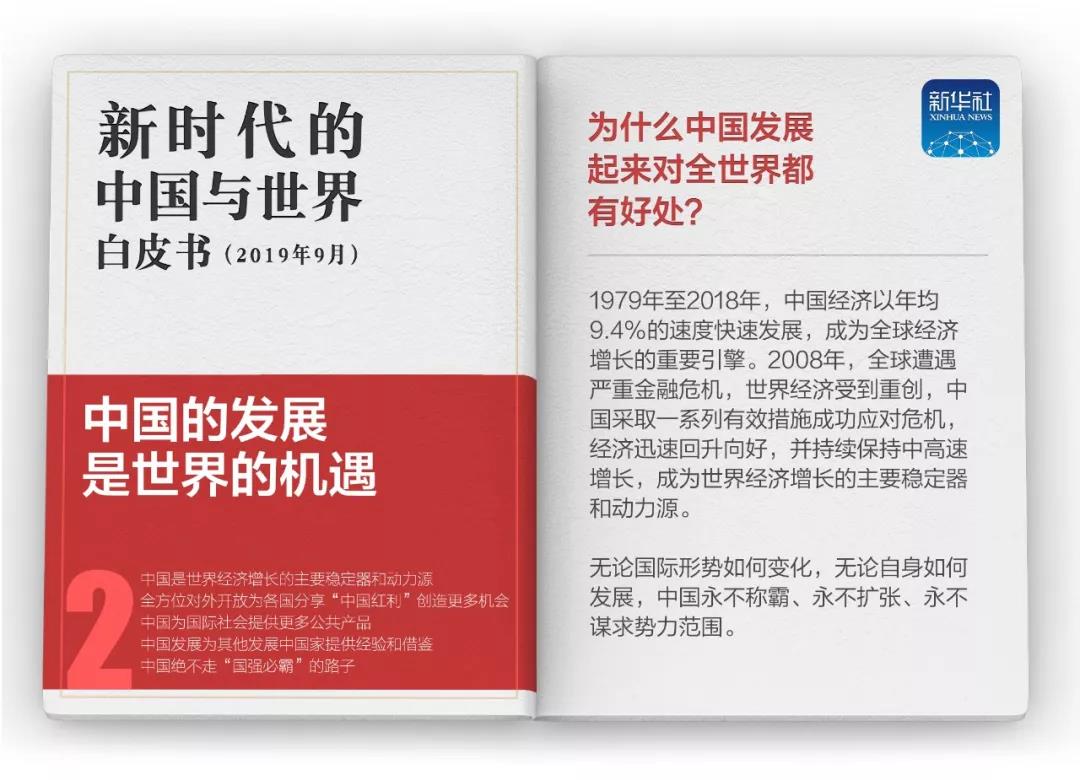 中國(guó)發(fā)展進(jìn)入了新時(shí)代。中國(guó)對(duì)世界的影響,從未像今天這樣全面、深刻、長(zhǎng)遠(yuǎn);世界對(duì)中國(guó)的關(guān)注,也從未像今天這樣廣泛、深切、聚焦。中國(guó)從哪里來(lái)、向哪里去?中國(guó)推動(dòng)建設(shè)什么樣的世界?發(fā)展起來(lái)的中國(guó)如何與世界相處?為回應(yīng)外界關(guān)切,增進(jìn)國(guó)際社會(huì)對(duì)中國(guó)發(fā)展的了解和理解,值此中華人民共和國(guó)成立70周年之際,中國(guó)政府發(fā)布此白皮書。