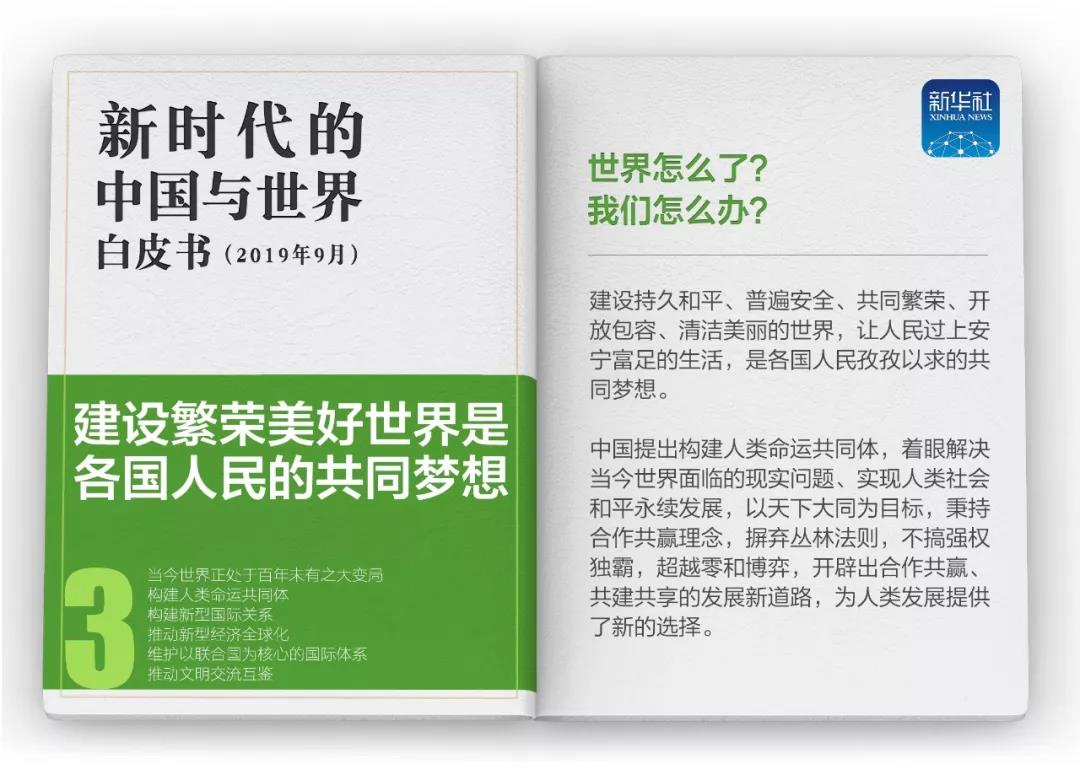 白皮書最后指出,當(dāng)今世界,各國(guó)的前途命運(yùn)從來(lái)沒有像現(xiàn)在這樣緊密相連。每個(gè)國(guó)家都和世界的前途命運(yùn)休戚相關(guān),只要目標(biāo)一致、團(tuán)結(jié)起來(lái),共享機(jī)遇、共迎挑戰(zhàn),就能構(gòu)建人類命運(yùn)共同體,建設(shè)更加美好的世界,走向更加光明的未來(lái)。