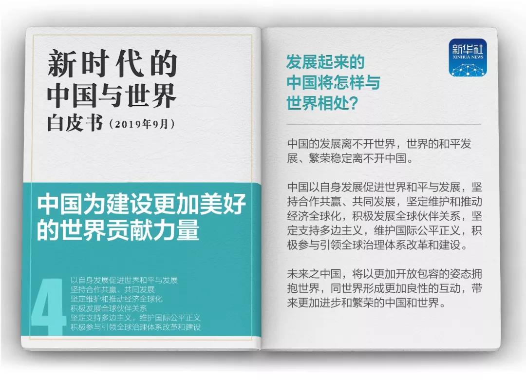 當(dāng)前,中國(guó)發(fā)展進(jìn)入了新時(shí)代。白皮書指出,新時(shí)代的中國(guó),走中國(guó)特色社會(huì)主義道路的決心不會(huì)改變,與其他國(guó)家互學(xué)互鑒、合作共贏的決心不會(huì)改變,與世界攜手同行的決心不會(huì)改變。未來(lái)之中國(guó),將以更加開放包容的姿態(tài)擁抱世界,同世界形成更加良性的互動(dòng),帶來(lái)更加進(jìn)步和繁榮的中國(guó)和世界。
