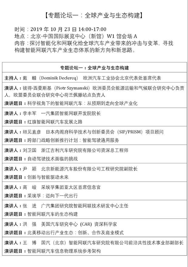 經(jīng)國務(wù)院批準(zhǔn),世界智能網(wǎng)聯(lián)汽車大會(huì)(WICV) 將于2019年10月22-25日在北京隆重召開。大會(huì)著眼于全球智能網(wǎng)聯(lián)汽車產(chǎn)業(yè)的生態(tài)環(huán)境構(gòu)建和產(chǎn)業(yè)升級,通過主論壇及專題論壇、院士講堂、開發(fā)者大會(huì)、閉門會(huì)等多種形式,共同交流探討智能網(wǎng)聯(lián)汽車在技術(shù)創(chuàng)新、政策導(dǎo)向、市場模式等領(lǐng)域的成功經(jīng)驗(yàn)與發(fā)展趨勢,凝聚產(chǎn)業(yè)共識,明晰政策方向,探索技術(shù)路徑。 主辦單位:北京市人民政府、工業(yè)和信息化部、公安部、交通運(yùn)輸部、中國科學(xué)技術(shù)協(xié)會(huì) 承辦單位:工業(yè)和信息化部裝備工業(yè)發(fā)展中心、北京市經(jīng)濟(jì)和信息化局、中國電子信息產(chǎn)業(yè)發(fā)展研究院、北京市順義區(qū)人民政府、中國國際貿(mào)易促進(jìn)委員會(huì)機(jī)械行業(yè)分會(huì)、中國電工技術(shù)學(xué)會(huì) 時(shí)間:2019年10月22日-25日 |