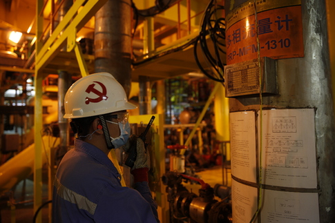中國海油南海西部油田海上平臺員工堅守一線崗位,對現(xiàn)場生產(chǎn)設(shè)施進行巡檢和維護,確保海上油氣田對民生供氣的穩(wěn)定充足。(企業(yè)供圖)