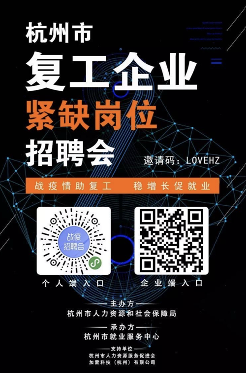 如果您對(duì)來杭工作有興趣,可點(diǎn)擊下圖杭州“線上招聘會(huì)”,查看杭州復(fù)工企業(yè)用工需求。杭州歡迎您!